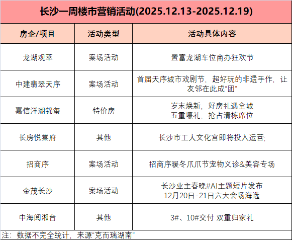 楼盘营销活动方面,接近年关,根据不完全统计不少楼盘采取特价房、降价促销、买房送礼等案场活动,促进楼市去化,详情请下图: