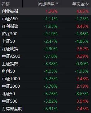 其他主要股指几乎全线飘绿,微盘股领跌;仅创业板指累计收涨。